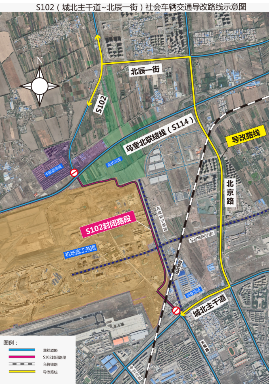 原经S102(安宁渠路)施工路段通行的车辆,可通过北辰一街、北京北路、城北主干道等道路绕行。