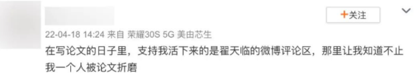 有人说,翟天临的微博评论区是当代毕业生的互联网哭墙,大家在这里吐槽一刀切的论文政策带来的种种压力和不满,已经形成了每年必经的社交传统。