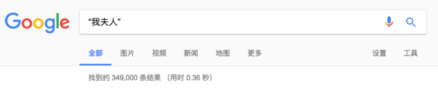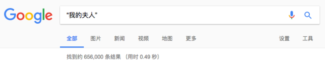 我们用Google加引号搜索“我夫人”和“我的夫人”这两组关键词,可以分别得到三十五万个和六十五万个搜索结果。由此可见,在当代,称呼自己的妻子为“夫人”的用法在汉语使用者中间仍然具有相当强的社会性。