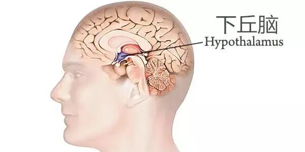 大脑有一整套自主研发的高科技设备来维持我们的体重。有个叫做“下丘脑”的小东西就是其中用来调节热量平衡,维持体重的核心设备[7]。下丘脑藏在大脑下部、脑干上方,个头虽然只有杏仁那么大,却是负责调节身体内分泌活动的高级神经中枢。