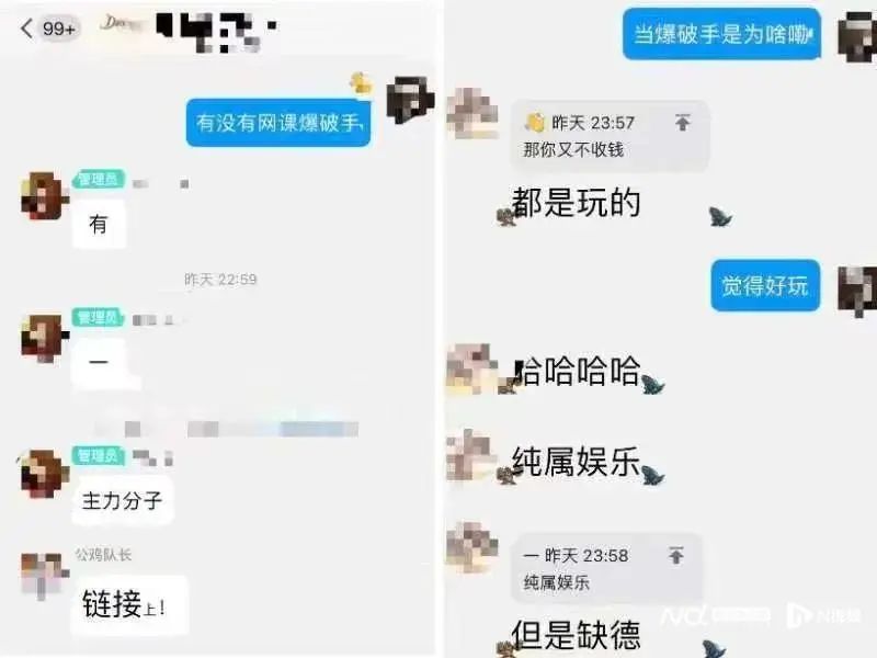 有一名“网课爆破手”在获得会议号后,于约定时间内进入会议室,通过开麦播放刺耳音乐、公屏留言的方式对网课进行干扰。这名“网课爆破手”向南都记者透露,他是一名初中生,通过“爆破”并不能赚到很多钱,为了好玩才这样做,甚至愿意免费提供“爆破”服务。