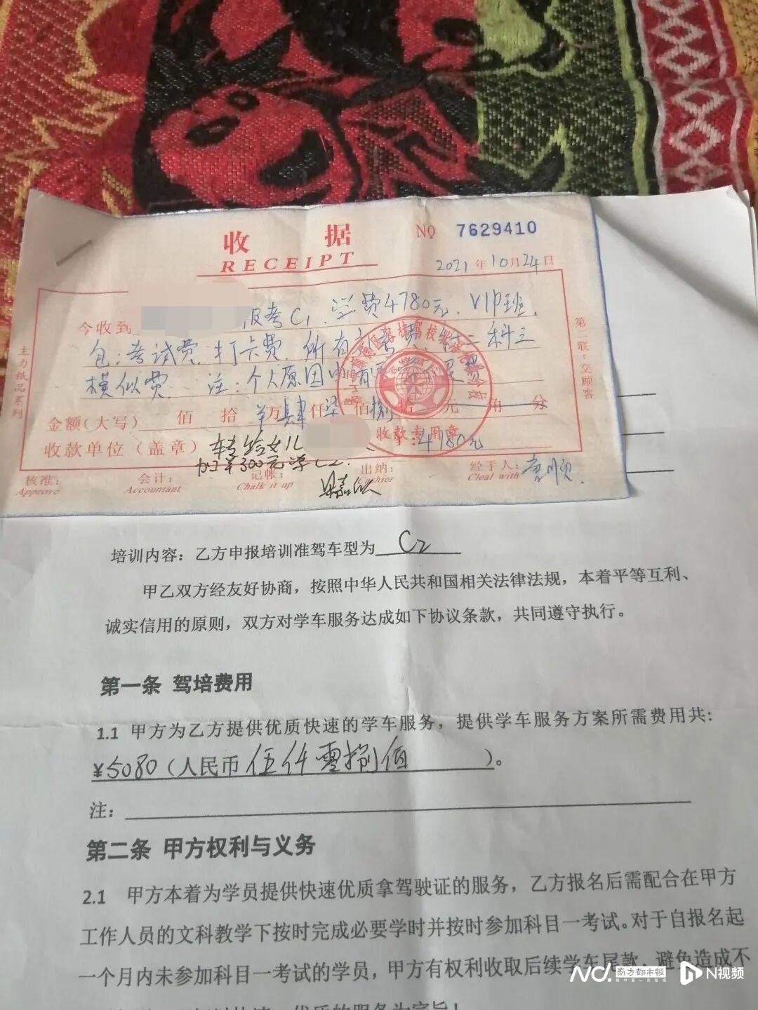 阿强告诉记者,此事还涉及另外2家驾校,其中之一是容桂驾校,“智驾驾校的前身为容桂驾校的一处报名点,今年才变更的,而我是去年10月在这里报名学车的,交了4780元,当时合同和收据上盖的印章也是这个驾校的。”