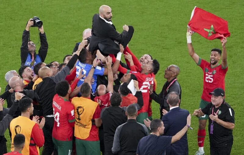 伟大传奇痛哭转身的背后是疯狂庆祝的摩洛哥人。他们成了历史上第一支晋级世界杯四强的非洲球队,值得一提的是,主帅雷格拉吉开赛前81天才接过球队教鞭。