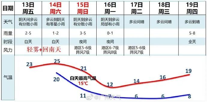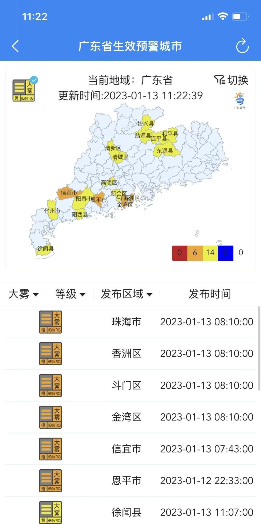 预计,13日傍晚到15日早晨受暖湿气流影响,湛江市各地和琼州海峡有雾,早晚能见度低,雾时湛江市陆地和琼州海峡部分时段能见度小于500米,大雾天气可能导致琼州海峡停航,需关注雾对海陆交通及琼州海峡通航的影响;请交通、航运等部门注意做好防范措施。过海旅客可提前关注相关部门的通航信息。