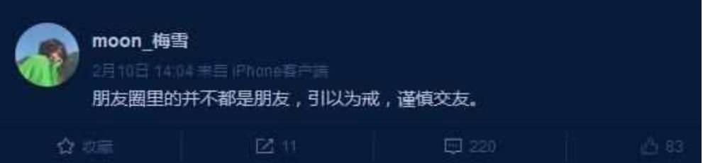 而在那组旅游照片被网友曝光后,她还在微博上diss过自己朋友圈的朋友,似乎很不开心她和苏醒的恋爱,被人这样曝光出来。