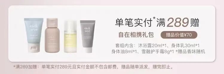 单笔订单满 289 元,赠价值 70 元礼包