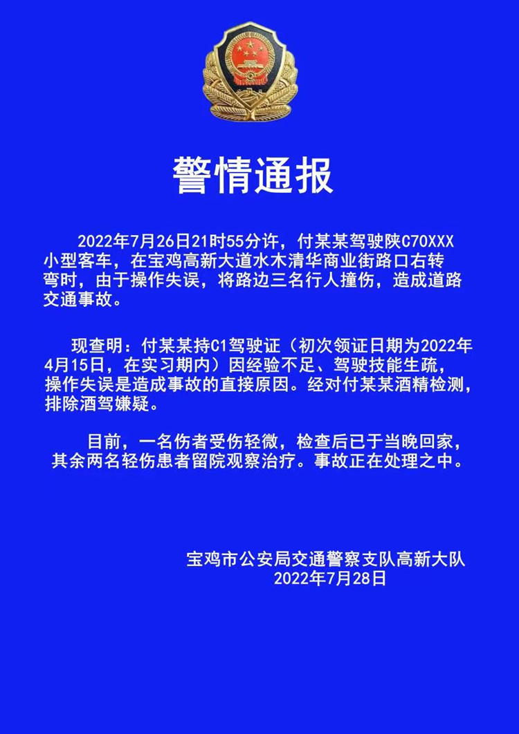 7月28日,宝鸡交警发布一则警情通报。具体如下: