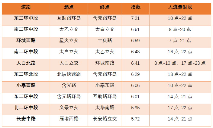 今年国庆假期首日(10月1日)有小雨,受降雨影响,西安市民户外活动将有所减少,市区主干道流量增加,预计在上午10:00左右出现大流量。