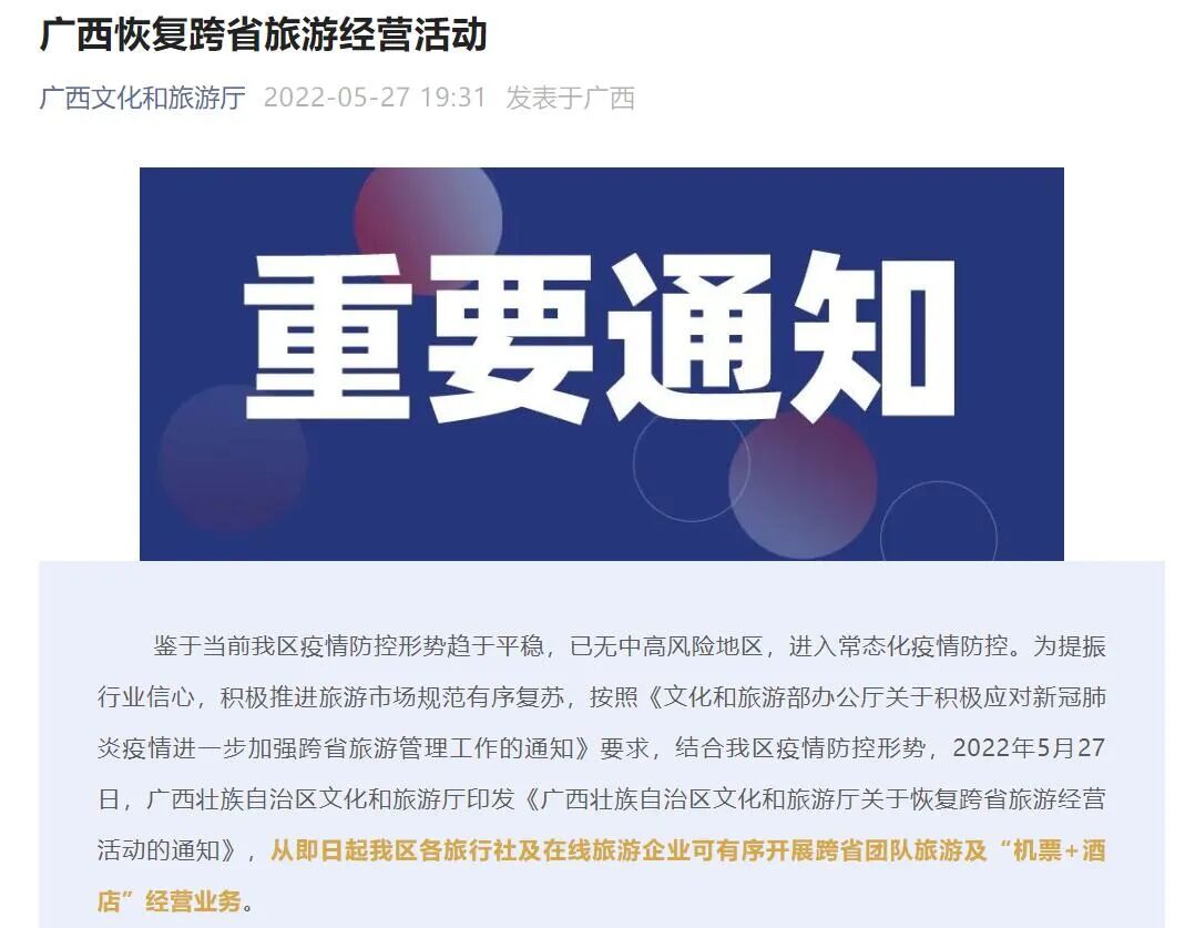 可有序开展跨省团队旅游
