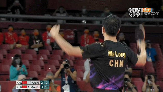 击败奥恰洛夫之后,这种压力终于消失了,采访中回忆这段,马龙带着松一口气的表情解释当时的解脱,「至少金牌是中国队的。」这也是中国乒乓球运动员的一个隐形宿命——只有胜利会师决赛,接下来的时间才是真正属于自己的。一天之后,马龙与小自己9岁的队友樊振东决战山巅。完成了「金牌属于中国队」的既定任务,他们终于有机会片刻享受某种宿命外的轻松,那是撇开任务、义务、责任后的五十多分钟,是自己为自己拼尽全力的五十多分钟,是完完整整属于东京周期最伟大的两名男子乒乓球运动员的五十多分钟。五十多分钟的拉锯、厮杀,最纯净也最残酷。最后一球,马龙拿到赛点,发球前他握球狠狠撞击了几下地面,重新握球,抛球出击,打,反手相持,马龙赢了。乒乓球的历史在那一刻写就——马龙实现了奥运会男子单打项目史无前例的卫冕,也成为男子乒乓球历史上首位完成两次大满贯的球员。这场比赛,也是马龙的第25个世界冠军,这让他超越保持24个世界冠军头衔的王楠,成为名副其实的历史第一人。仅仅过了一周,马龙与队友许昕、樊振东斩落乒乓球男子团体金牌,他的世界冠军数来到了26个。球迷甘棠在决赛后写了一篇文章,文中总结了马龙以一己之力书写的神迹:马龙将乒乓球这项运动的山峰,拉到了后人几乎难以翻越的高度。这些赛前想也不敢想的纪录,也修正了甘棠原本对于马龙或是乒乓球这项运动的认知,她之前的理解是,「纪录是给人超越的,或早或晚,一定会被打破」。但东京之后,甘棠觉得未来的人们想要全面超越马龙,几无可能。对于最后的那场决赛,除了创造历史,甘棠还有另一种理解:「这可能是马龙职业生涯最重要的一场比赛之一,但这也是他最轻松的比赛之一,因为整届奥运会,横跨14天,如箭在弦的令人窒息的赛程中,只有在这场比赛里,他可以免于赢球的义务。」夺冠后马龙冲观众席比心