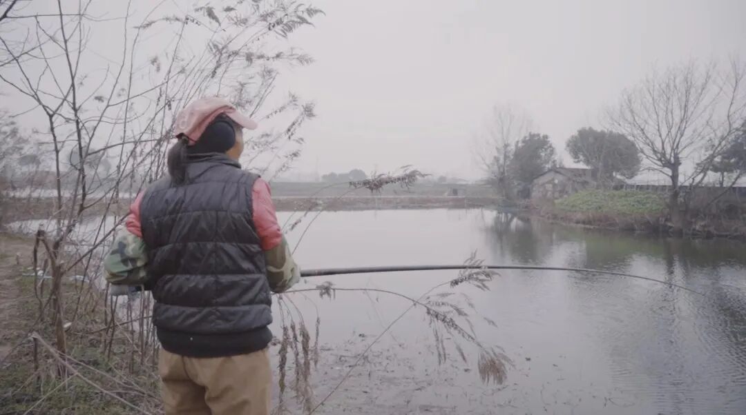 吕大爷的技术好,很多人都知道,包括73岁的李桂梅。她是这些人里少见的女性,穿着一件红色的羽绒服,戴着一顶红色的鸭舌帽,两年前跟着丈夫一起来钓鱼。她说,吕大爷钓鱼好是因为「有秘方」。之前很多人都想知道他的饵料是怎么配的,每天跟着他,跟他玩得很好,想套出他的秘方。「但是他不讲,后来大家都不跟他玩了」。钓鱼的女性少,除了安全问题,也因为鱼竿伸出十几米,需要足够的臂力才能稳住。年龄大的女性往往没有这个力气。但李桂梅可以。她虽然看起来瘦弱,尽管已经穿了4条裤子(秋裤、毛裤、绒裤、外裤),两件毛衣一件羽绒服一件背心,看起来依然瘦瘦小小。但她撑着鱼竿,也能站上4个小时不用坐下休息。李桂梅的两个孩子都反对她钓鱼,怕她掉进水里。但她是个闲不住的人。原本退休后一直在外面打工,做保洁,一直打到70岁。因为年龄大,没有地方再愿意要她,她才不得不回家「养老」。在家待了一段时间,她就觉得实在太没意思,「躺一天浑身难受」,看电视看得眼睛都快不行了。也睡不着,晚上八九点睡觉,凌晨2点就醒,躺床上消磨时间。两年前,她开始跟着当时已经75岁的丈夫一起来高淳钓鱼。第一次就钓到了,还有一次比丈夫钓得还多,慢慢的,她越来越上瘾。重要的是,钓鱼不怎么花钱,一根鱼竿能用两三年。手套还是退休前单位发的,她把大拇指和食指的位置剪掉,露出两个手指正好可以捏鱼饵。冬天,还会在手套里套个塑料袋,保暖。蚯蚓2块钱一盒,两个人能用很久,为了节省,她每次钓到鱼还要从鱼嘴里把蚯蚓抠出来。虽然看起来瘦弱,李桂梅却可以撑着鱼竿站上4个小时