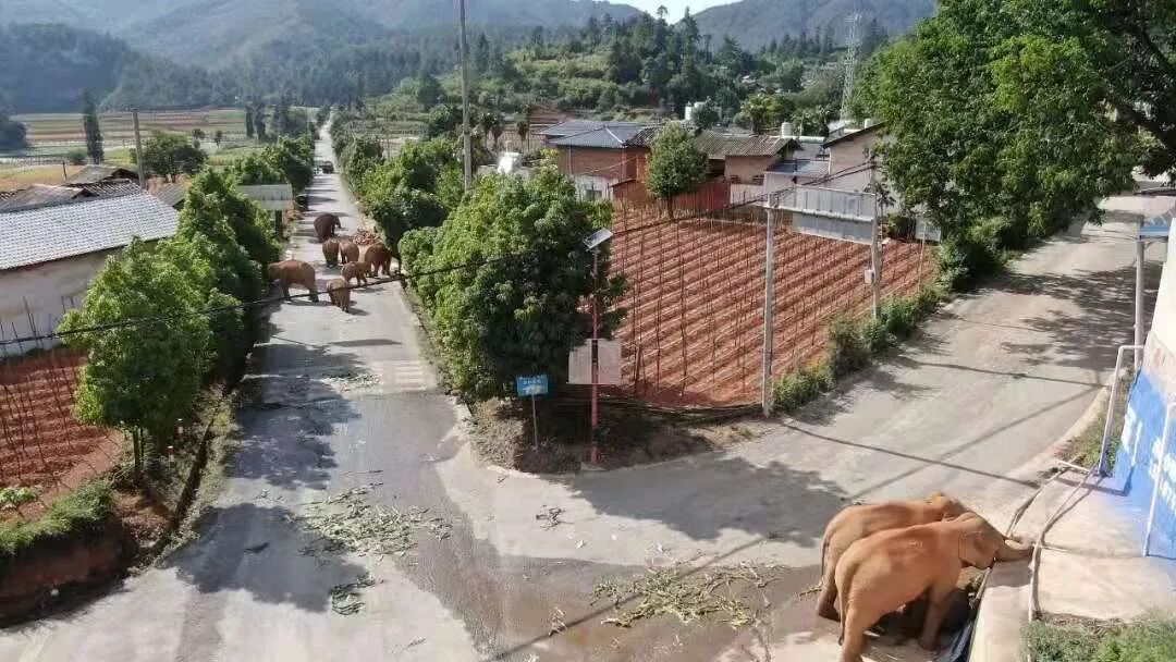 但是现实很快修正了郭贤明当时的浪漫想象,那个年代西双版纳经济很落后,农民手里也没钱,「当地的老百姓对自然资源依赖比较大。像去砍木料啊,像去打猎啊,刀耕火种那些。」所以郭贤明最初的工作也是巡山,他性情温和,说的话老百姓也不怎么听,但更核心的问题是,他自己也矛盾,「不能说我为了保护亚洲象或是什么,就剥夺了人的生存区,我们的老百姓也需要生存。」此次随着北迁象群被外界热烈讨论的橡胶林和茶园,至少在郭贤明或者是保护区的权限范围内,他们干预不了老百姓的决定,「从国家划定保护区以后,从我们的角度来考虑,保护区就是作为亚洲象的栖息地,保护区外,那个是我们控制不住的。」正像这次象群北迁事件所展示的,人类是一种需要规则、界限、职能界定、社会分工才能去行动和创造的复杂生命体,但大象和它们诸多的野生伙伴,却延续着自然界持续千百万年的野性、自由和仅被生存本能驱动的单纯。在实际工作中,郭贤明很早就意识到了作为「万能人类」的某种局限,比方说西双版纳保护区共计24.25万公顷的面积,是人为划定、必须严格执行各种保护政策的野生动植物王国,过去30多年,他们在这个疆界之内尽力行使职责,成绩也很明显,西双版纳保护区的森林覆盖率由上世纪80年代的88%上升到了现在95%以上。在人类的标准里,这是进步和胜利,但在现实情况下,由于森林郁闭度过高,林下乔木和草本植物无法生长,反而让大象和很多野生动物失去了下脚的地方。郭贤明总结亚洲象最理想的栖息地,「第一个,亚洲象是吃草的动物,里面一定要有足够的草,它喜欢吃的那些草和菜,里面要足够。第二,亚洲象它喜欢玩水,喜欢玩泥,喜欢吃那些矿物质,我们说的硝盐,它需要。另外还有一个就是,通俗地说就是树林不能太密,那个光可能就是60%、70%的太阳光能够照进去,如果说是光太少,大象实际上它并不是太喜欢的。太阳基本照不进去那些地方,大象是不会去的。」近些年随着人象冲突的加剧,郭贤明也开始在工作中做出一些尝试,比如在保护区内划定一片区域,然后砍掉一部分高大林木,再根据亚洲象的食性做出相应设计。这个时候悖论又出现了,《森林法》和保护区条例里面都有规定,禁止乱砍滥伐,但「合法」砍伐需要指标和层层审批,「像我们的主管部门是州林草局,州林草局它还没有这个权力批这个,我们可能至少要上升到省林草局,或者是国家林草局。」郭贤明也觉得,不应将北迁象群做太过娱乐化的解读。从科研角度,一群大象史无前例地漫游1000多公里,背后亟需解答的谜题有很多,但在一场连续的奇观当中,他觉得我们很可能浪费了一次宝贵的近距离研究亚洲象习性和行为模式的机会,「我们现在的思路,还是处理应急事件的思路,就是不要出事。实际上中间很多是空档,到了这个地方,到了你的地方,我松口气了,我终于不用管了,你下一步你接着管吧。」1968年,库布里克在电影《2001太空漫游》中抛出过一个无解的谜题,人类从猿人进化到太空时代,仰仗的是对工具理性的依赖,人类依托工具理性创造了自身文明的基础,但反过来这种思维模式也会形成对人类自身的奴役。各种观点就象群北迁的原因激烈交锋期间,张立有天发了脾气。那是6月12号,这位自嘲长相性情都跟大象越来越像的学者,被西双版纳当地一位官员的朋友圈激怒。那位官员否定人类经济活动对亚洲象生存的影响,这让张立有点儿哭笑不得,他把自己的研究图表贴到微博,那是1975到2015年遥感卫星拍摄的西双版纳地区照片对比,40年的变迁通过色块很直观地表现出来,橡胶和茶园面积逐渐增大,城市化进程迅速,大象的适宜栖息地混至其中、日益破碎,张立半是气愤半是无奈地写道:「大象为什么离家出走?要尊重科学。」站在亚洲象的立场上,问题其实非常清晰:在人类划定的保护区内部,森林越长越密,但阳光照不到它们赖以栖息的林下地带。在已经被人类占据分割的外部,是橡胶、茶园、高速公路、水电站、城镇、乡村、农田,是热火朝天的人类生活。亚洲象离开的,是一块内外交困的无依之地。 象群进入村庄 图源云南省北迁亚洲象群安全防范工作省级指挥部/人民视觉/视觉中国