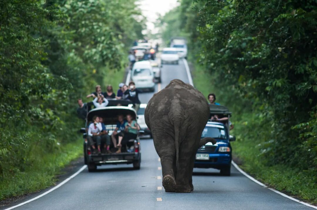 「如果不是这么出去一下,可能大家就认为象就是版纳的象,他并没有考虑到象是云南的象,象是中国的象,象是整个亚洲的象。」西双版纳保护区管护局科学研究所所长郭贤明希望纠正外界的错误认知,「好像一说象就说是西双版纳的象,出去的那群象一定要让它回到西双版纳来,回到自己的家,它不仅仅西双版纳是它的家,整个云南都是它的家,曾经到处都是它的家。」 2016年1月,泰国,一头大象突然闯入公路中央,独自漫步一小时 图源视觉中国