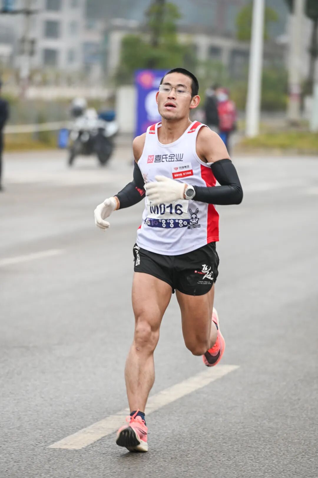 作为中国最早一批业余全职跑者——这真是个奇怪的词,说业余是因为他从未接受专业训练,说全职是因为他收入全部依赖于此——支撑他走过最初那段路的动力一定不是来自钱。刚辞职时,跑步奖金与原先工资能勉强持平,他非常节俭,常坐十几小时的绿皮火车去参赛。「能坐绿皮车的绝对不会坐动车,能坐硬座的绝对不会买卧铺的,我太了解他了。」魏普龙说。一个增加收入的机会来了。马协有个副会长在合肥万科工作,提出可以给梁晶申请一个虚职,只要他在比赛时穿万科的衣服,一个月工资一万块。他们把销售部负责人请到马协办公室,聊这个计划。魏普龙激动地流下了眼泪,燃眉之急解决了,梁晶的生活来源有保障了。现在只差一个面试了,师父对徒弟千叮咛万嘱咐,一定要穿得整洁一点,最好打个领带,绽放笑容。既然已谈到了具体待遇,一切似乎已是板上钉钉。面试后,对方只是让梁晶回来等消息,就不了了之。「没搞成,对我打击也很大。」魏普龙说。后来,他才从推荐人那里知道,梁晶当天是从家里跑了十公里过去的,穿着随便,身上有异味。他在楼下买了包子吃,说话时「韭菜都在牙齿上」。继2014年在济南超马赛拿到冠军,2015、2016年梁晶继续统治这条赛道,实现了三连冠。他在越野项目上也愈发出色,拿回一个又一个的冠军。2016年底一个采访中他承认,每月奖金可以轻松过万。往往越长的赛道,他赢面就越大。让他获胜的原因,不是盐丸,不是能量棒,不是某种神奇补给秘方,不是他结实的腿部肌肉线条,不是他的好胃口,不是他的膝盖、胫骨、跟腱、髋部、足跟或者任何生理构造,而是某种无形的东西——至少了解他的人都是这么说的——意志。或者不如说得直白些,是对痛苦的忍耐力,力竭之下的死撑。用已有的运动医学理论来解释超长距离耐力赛跑是徒劳的。这就是为什么很多跑者缺少对这类比赛的参与意愿,因为过程太残忍,注定要付出身体折损的代价。这就是为什么观众会在现场热泪盈眶,因为只有置身其中才能感到那种无与伦比的悲壮感。梁晶的脚趾常年都有淤血造成黑指甲,掉了再长,长了再掉,那是他这类跑者的专属徽章。如果12个小时超马赛已经足够疯狂了,还有48小时的。任何事情,不眠不休做48小时都足够恐怖了,遑论调动全身肌肉的奔跑。梁晶唯一比过的一场48小时超马是在台湾,赛前他突发低烧,还是参赛了。跑到第29个小时,他终于顶不住了。退赛时,他领先第二名竹田贤治15公里。失败者依然得到胜利者的尊重。魏普龙回忆,冠军竹田贤治赛后与梁晶见面,「鞠了三个躬,说你是真正的英雄。」不要质疑挑战那些远比马拉松更长的比赛的存在意义是什么,不要质疑一个人挑战连续奔跑12小时、24小时甚至48小时的意义是什么。如果这是一场事关具体损益的辩论,如果重点在于风险控制与模型分析,被质疑挑战者永远会输。 2018年,梁晶参加海口马拉松赛 图源视觉中国