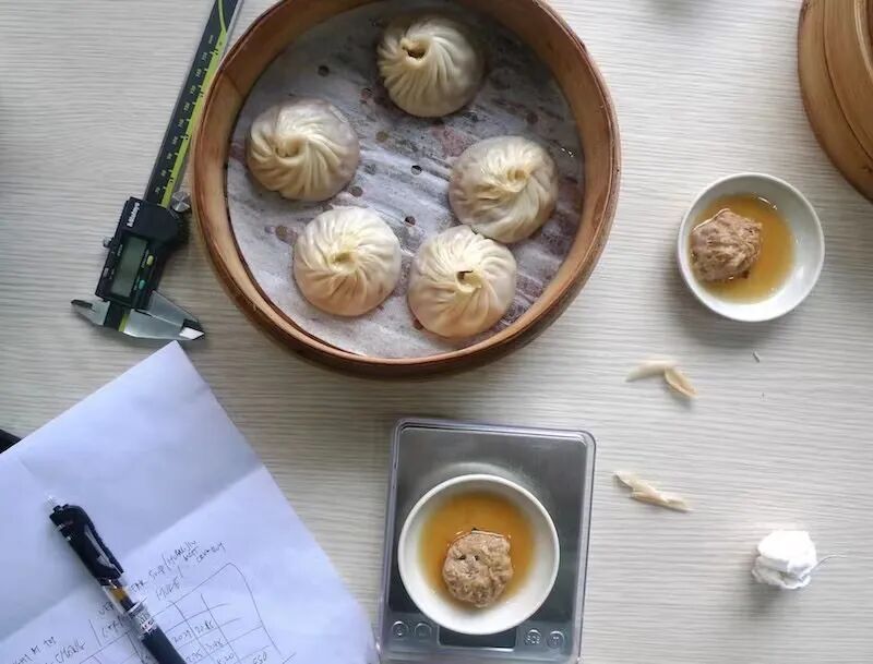 2015年,Chris异想天开做了个小实验,选了52家做小笼包的餐厅,分别测量了各家餐厅小笼包的重量、汤汁的重量、馅料的重量和皮的厚度,然后通过公式「(馅料+汤汁/皮厚度)X 100」对数据进行计算,得出分值,并结合实际感受给这些餐厅排序。