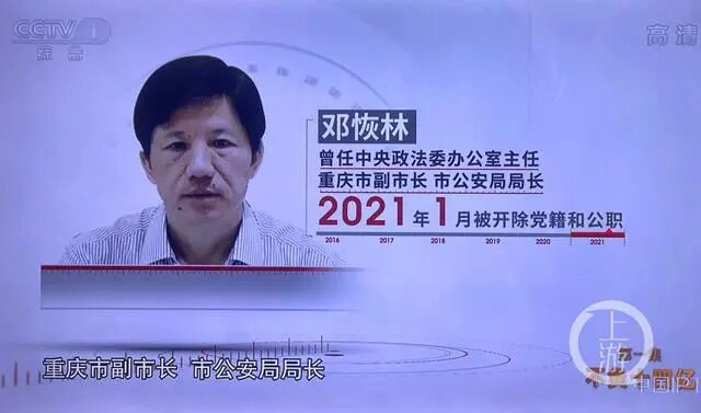 ▲孙力军政治团伙成员之一的重庆市原副市长、市公安局原局长邓恢林。图片来源/央视截屏