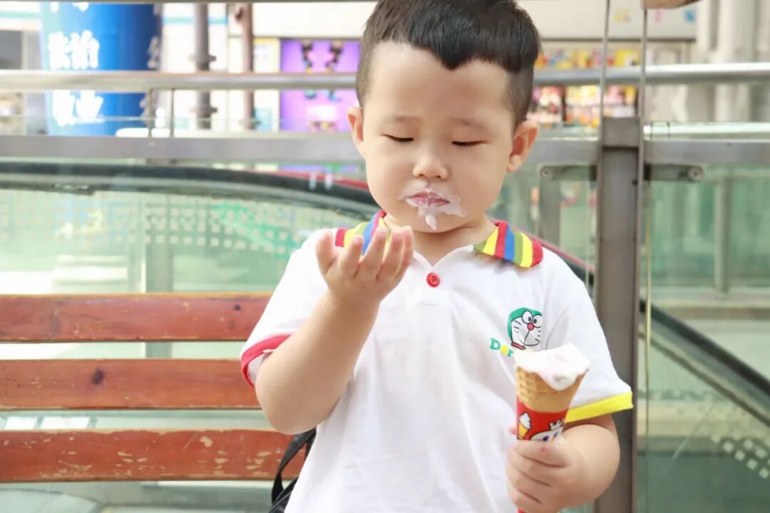 小朋友感受着冰淇淋的快乐
