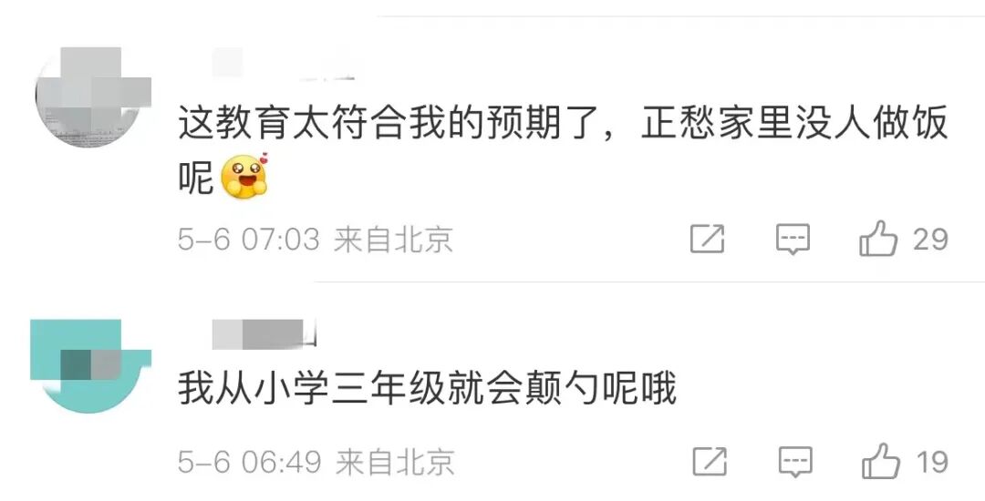话题#教育部要求9月起中小学生要学煮饭#