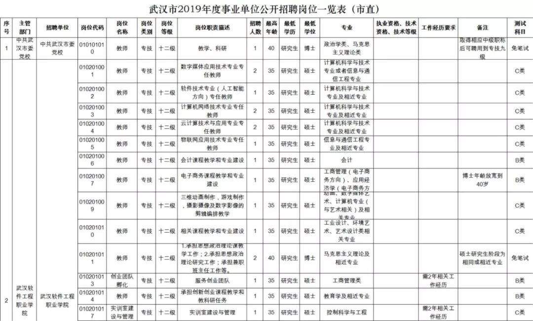 1、其他相关招聘政策请参看《武汉市2019年度事业单位公开招聘报考指南》(附件1)。