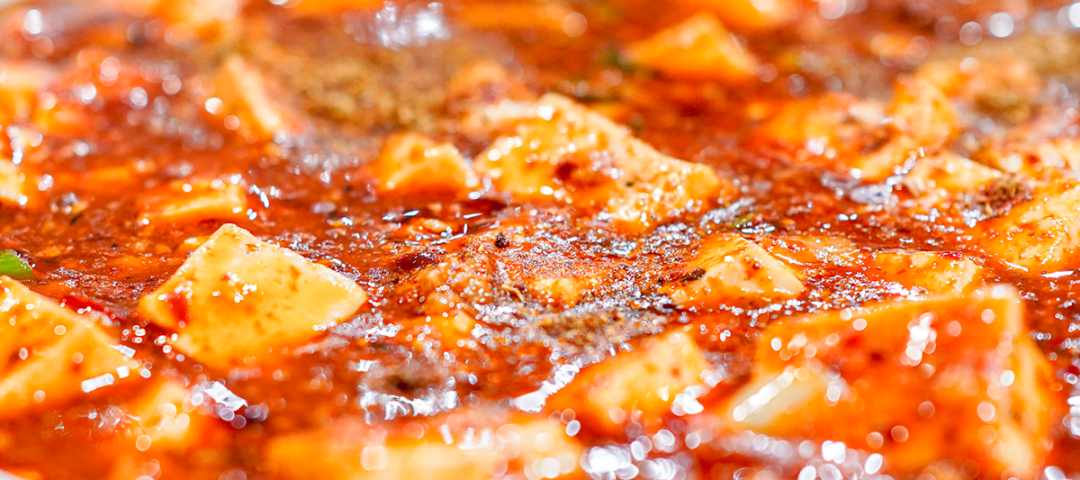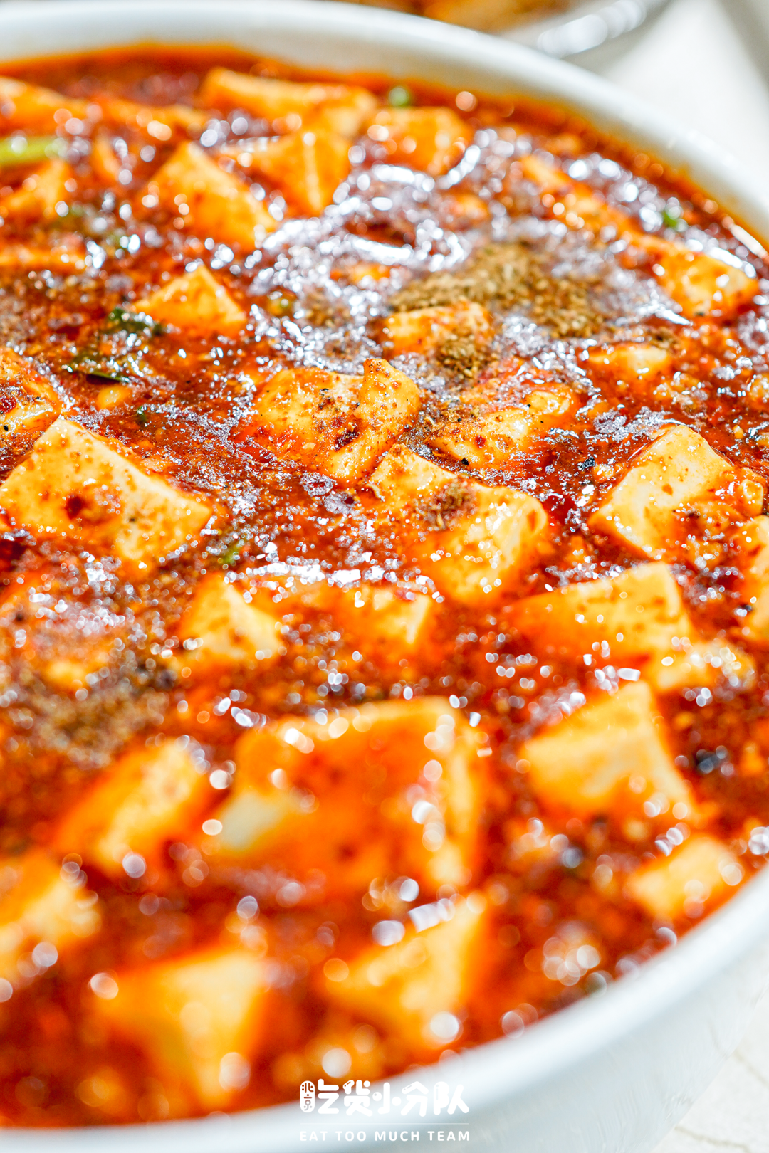 【麻婆豆腐】海洋是带着加热炉上桌的,咕嘟咕嘟冒着热气,表面的花椒粉可以根据个人口味酌情搅拌,吃不了太麻的可以作弊盛出去。