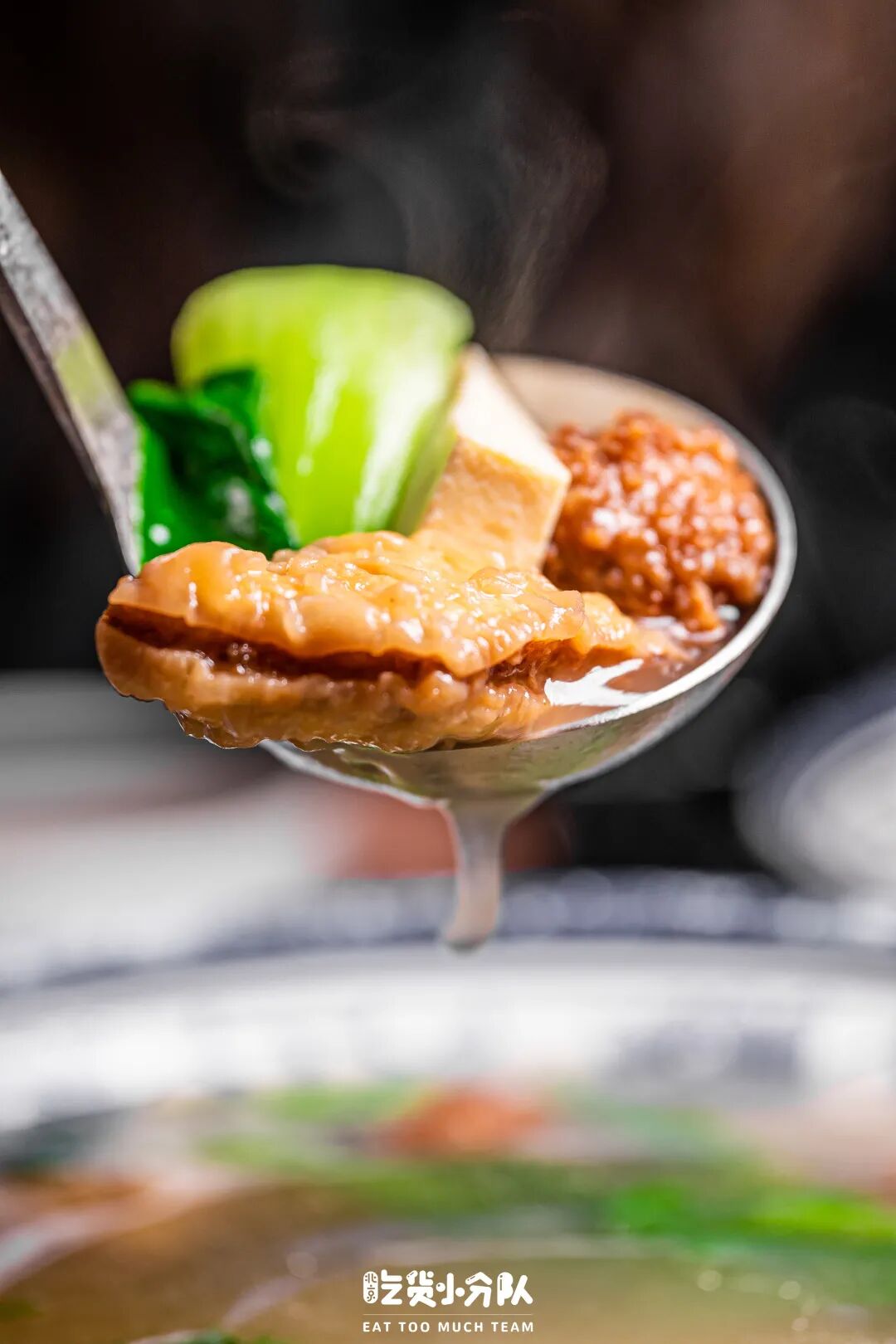 【烩小吃】是比较有银川特色的当地菜,汤底里煮上夹沙肉、丸子、豆腐、青菜、木耳,喝起来比较清爽。