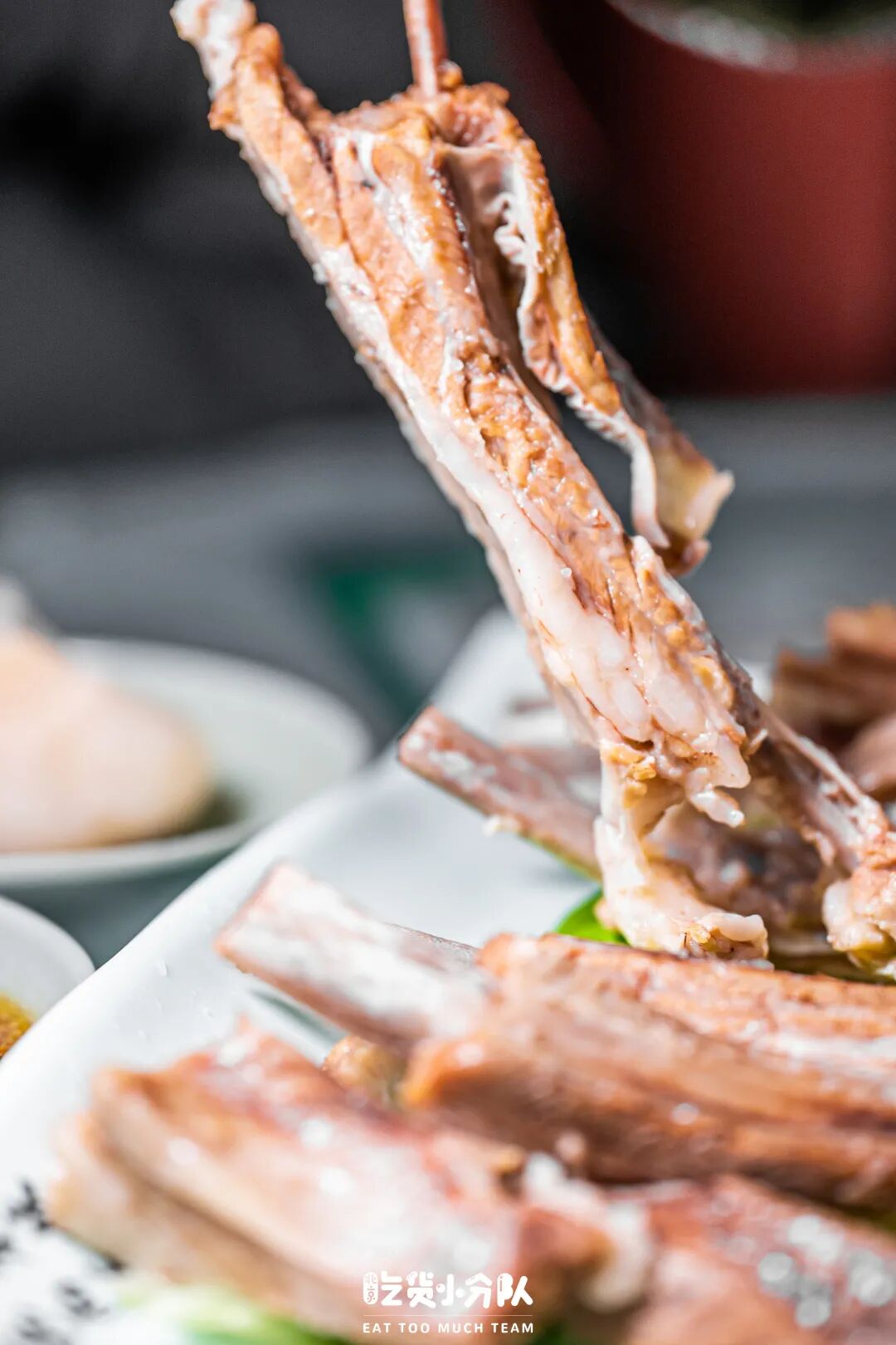 每根羊排上都是满满的肉,外面一层偏肥,贴骨肉更瘦更有嚼劲一些。吃的时候直接上嘴啃尤其爽,肉香会在嘴里爆开;想要吃的文雅一点就手撕,羊味稍稍有些重,不耐膻味的要斟酌一下。