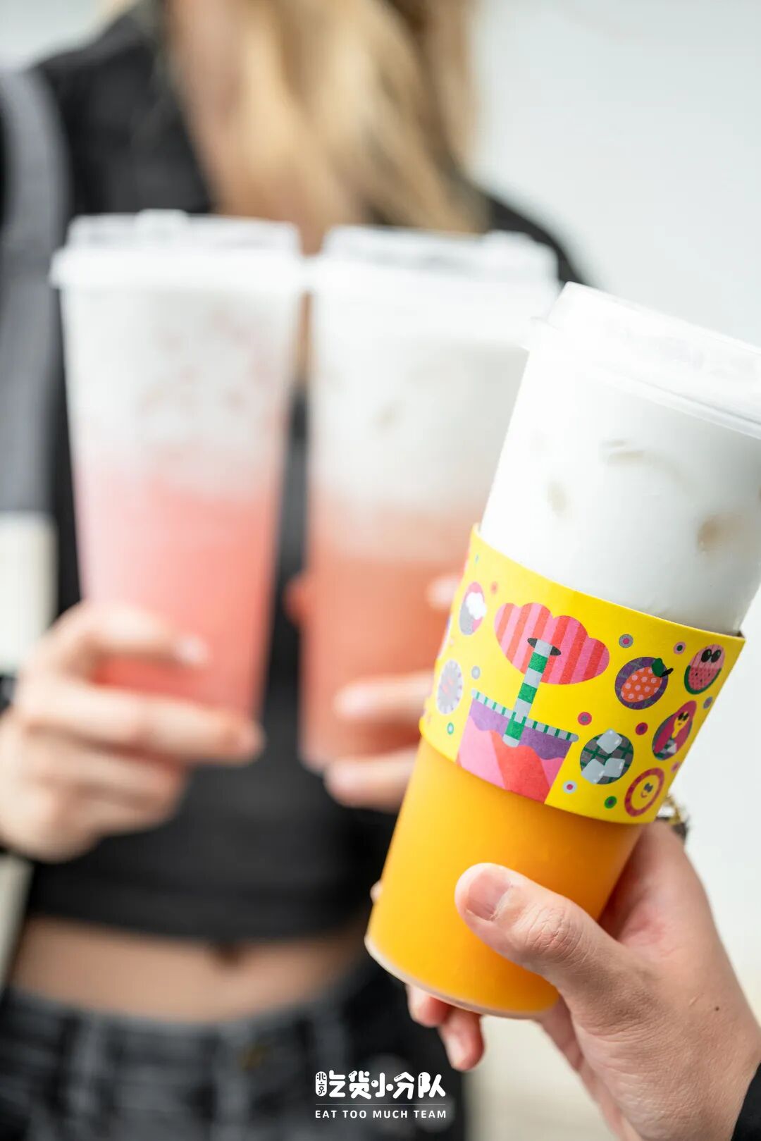 小分队打卡的主题店限定杯套袋非常有意思,精心设计的明黄色涂鸦,和水果冰饮是绝配~带上一杯走在国贸的绿茵下,打工人也可以小小的解暑一下~