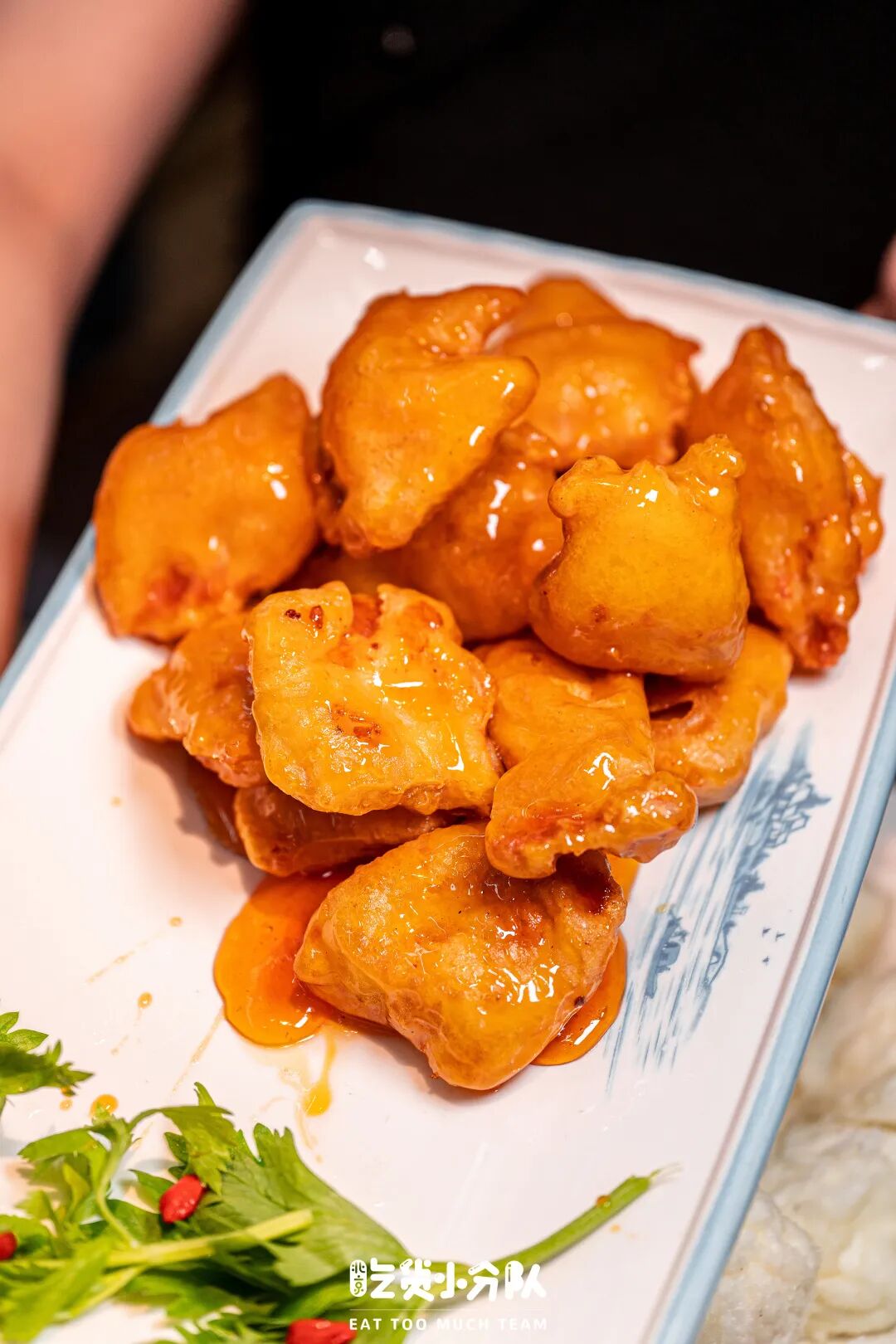 小分队点完菜服务员特地提醒说“点了三个甜口儿的菜”,当时觉得不以为然,吃到后来才开始后悔......必点菜【锅包肉】和以前吃过的不太一样,没有撒姜丝,端上桌没有太大的炝醋味儿,甜味和果味更重一些。