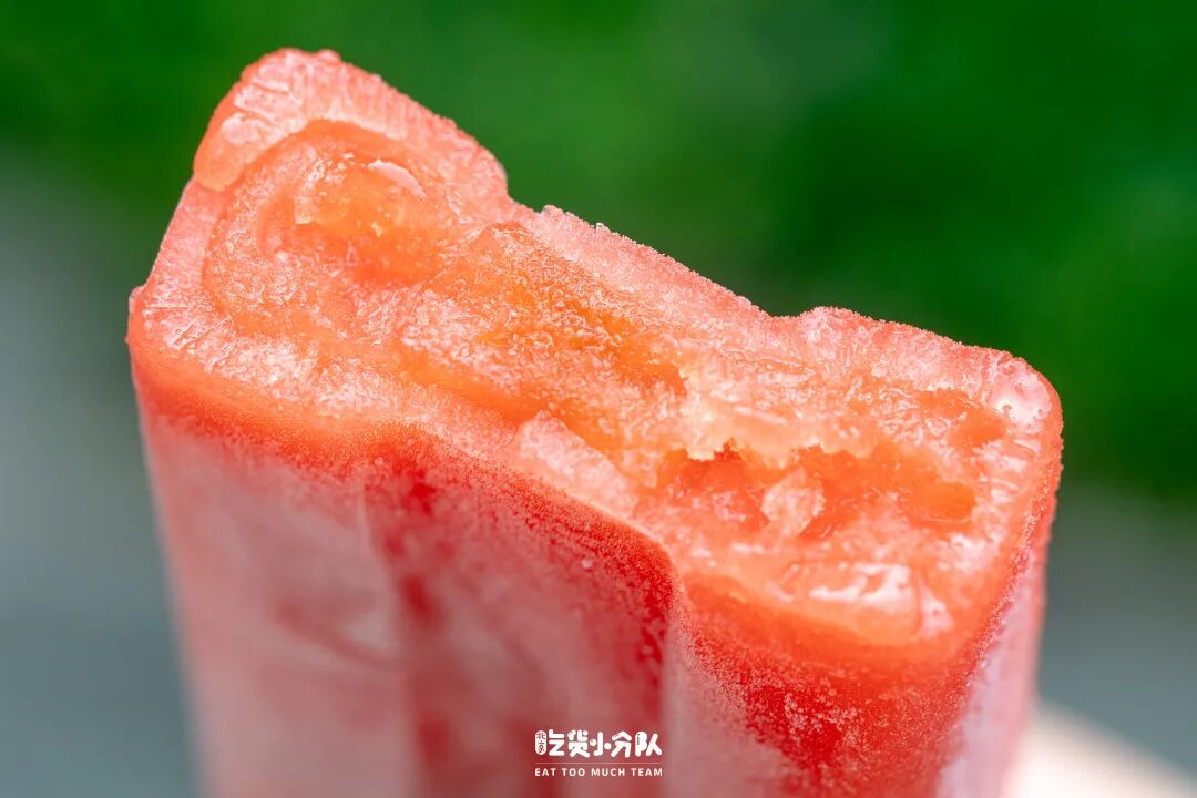 山楂味儿算是解暑必备,酸酸甜甜,清新爽口,吃完火锅或者烤肉来一根也很解腻。冰片蜜桃属于这个系列的经典口味,相比山楂更甜一点,可以吃到桃子果肉。