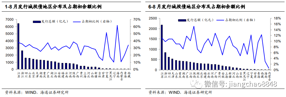 从再融资顺畅度看,今年以来城投发债募集资金高比例用于借新还旧(高于七成),且偿还债务不限于债券,说明不少城投在用较低成本的债券融资置换,考虑到下半年城投债务尤其是非标债务的再融资压力仍然较大,市场认可度较低、今年环境下城投债发行依旧偏少/困难的地区,比如东北三省、贵州、内蒙古、天津等地,以及城投非标违约频发的地区,要保持警醒。