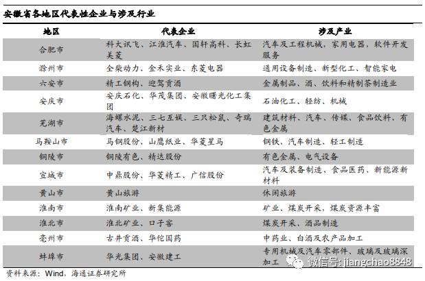 安徽省位于中国华东,与江苏、浙江、河南、湖北、江西以及山东接壤,总面积14.01万平方千米,2019年末常住人口6365.9万人。安徽濒江近海,有八百里的沿江城市群和皖江经济带,地跨淮河、长江、钱塘江三大水系;同时也是长三角的重要组成部分,处于全国经济发展的战略要冲和国内几大经济板块的对接地带。产业地位上来看,安徽是中国重要的农产品生产、能源、原材料和加工制造业基地,汽车、机械、家电、化工等加工制造型产业为省内重要的支柱性产业。未来发展方面,2019年末长三角一体化规划纲要公布,安徽将在长三角区域经济中发挥重要作用,推进皖江城市带联动发展,打造具有重要影响力的科技创新策源地、新兴产业聚集地和绿色发展样板区。
