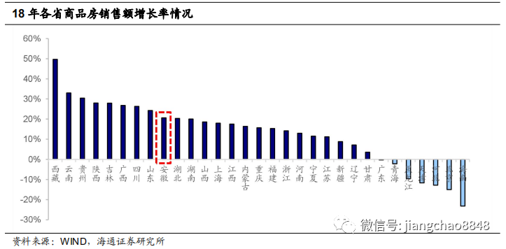 从房地产角度来看,2018年安徽省商品房销售额增长率约为21%,在全国31个省、市及自治区中位列第9名,处于全国上游位置,而2019年销售额呈负增长,增长率约为-3.6%。