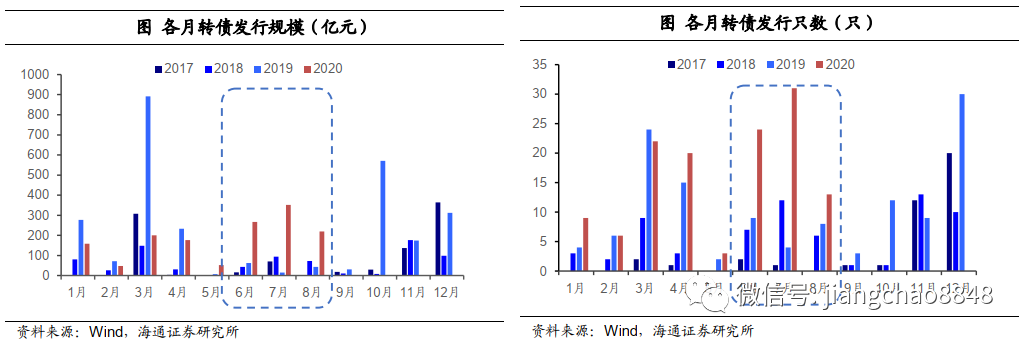 发行明显提速。一般转债1-4月,以及四季度发行是旺季,从今年的情况来看6-8月供给节奏和总量远高于往年同期,共发行68只,838亿元,去年同期发行21只,121亿元。