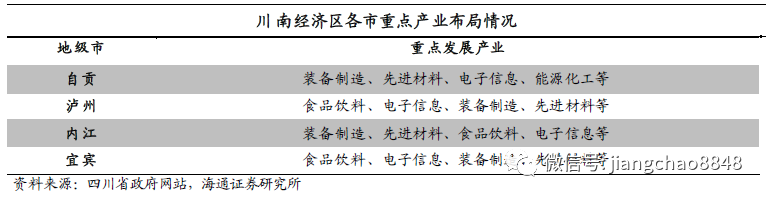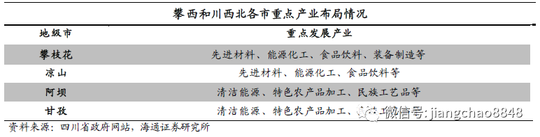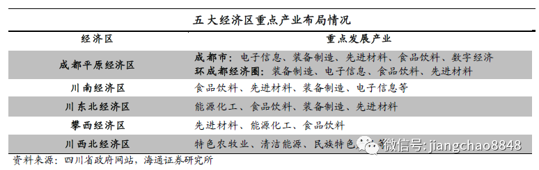 据2018年末四川省政府印发的《关于优化区域产业布局的指导意见》,五大经济区重点发展的产业如下表所示。