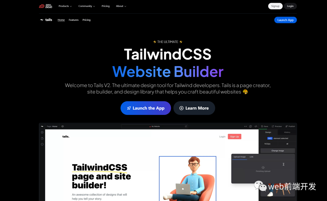 Tails 是一个用于 Tailwindcss 创建页面的无码开发工具,其中包含 220 多个用于增强你内容的组件,简便而快捷。