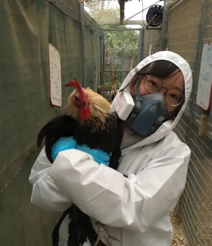 我当时觉得它特别喜欢我,以为人与鸡之间也产生了真挚的友情,还专门为它发朋友圈。后来发现,它是一只“渣鸡”,和每个人都一起玩,对实验室所有人都是那么好。