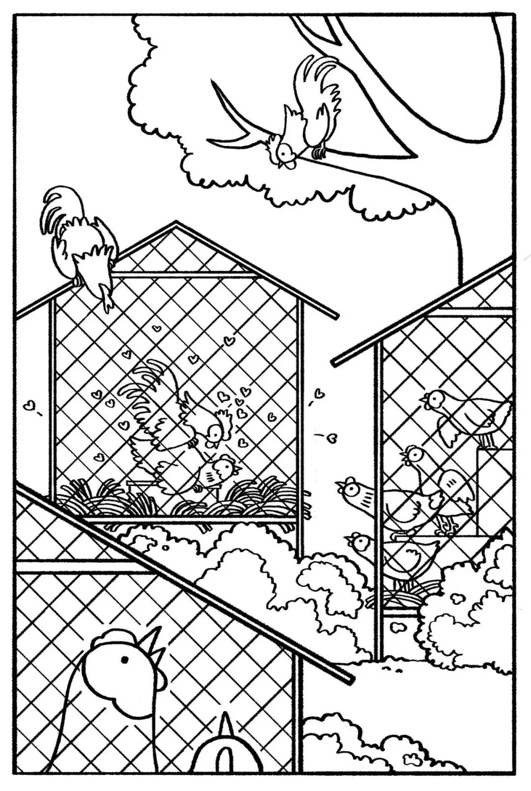 我们有一个大的笼子,里面有70多只鸡。全部都是公鸡,没有母鸡,所以就会出现同性强奸的情况,地位高的会强迫地位低的发生性行为。如果不服从,地位高的鸡们会守在喂食的桶和水旁边,只要那只鸡过去,它们就把它打一顿。