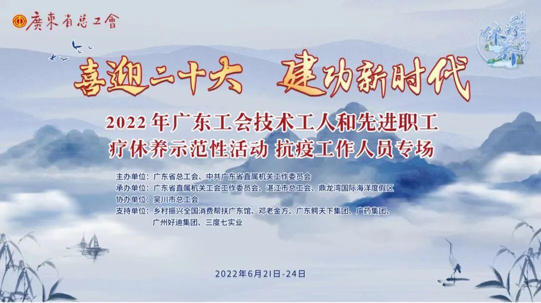 由广东省总工会主办,广东省直属机关工会工作委员会、湛江市总工会、鼎龙湾国际海洋度假区承办、吴川市总工会协办的“喜迎二十大 建功新时代”2022年广东工会技术工人和先进职工疗休养示范性活动——抗疫工作人员专场启动仪式将于6月22日上午在吴川市鼎龙湾国际海洋度假区举行,来自全省各地的100多名职工代表将开启为期4天的疗休养。