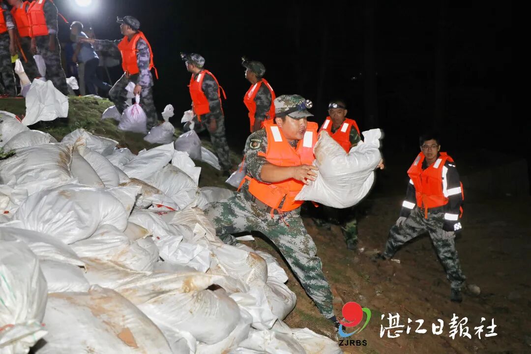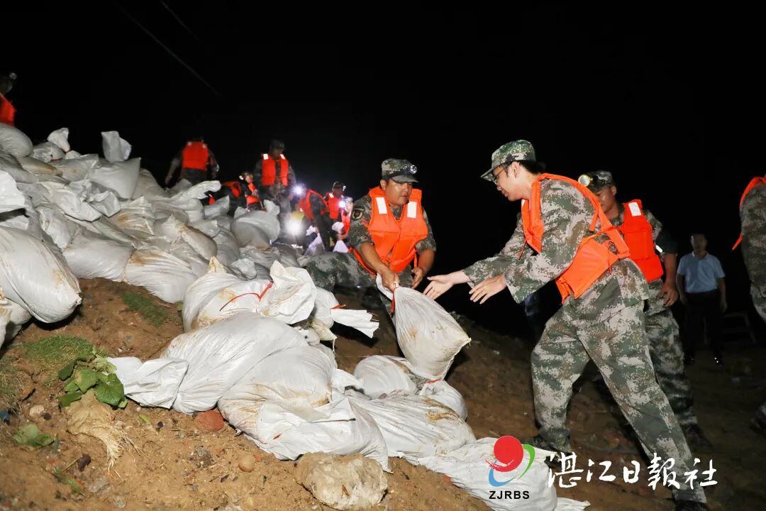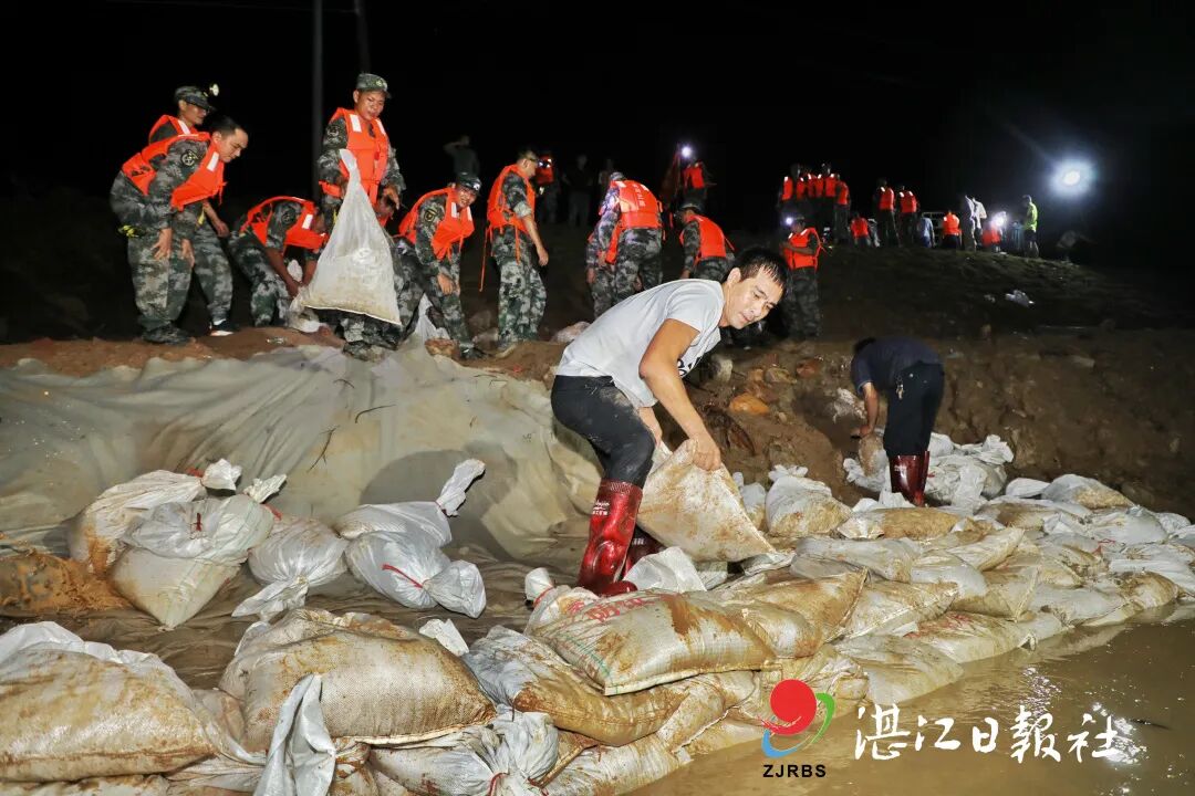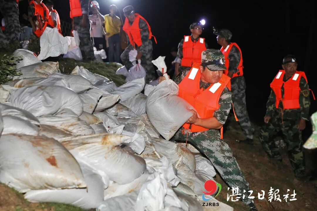 8日凌晨4时左右,吴川市浅水镇镇委书记叶剑平、镇长林小颖带领镇村干部夜巡小东江浅水镇榕树村段堤坝。因为汛请,该段堤坝出现大面积险情,7日下午14时至记者发稿时,他们已经奋战在堤坝14个小时。