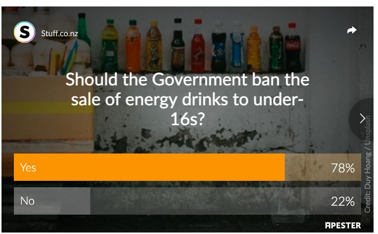 在新西兰,民间对禁止给青少年售卖能量饮料的呼声也很大…