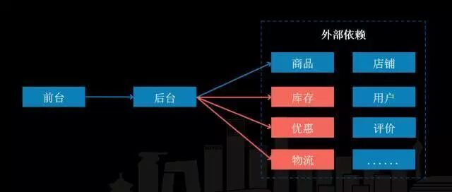 我们再来看一下商品详情页应用的后台架构。商品详情页是阿里最早实现静态化应用之一。那些与浏览者无关信息,比如商品标题、图片信息、销售属性组合等信息均直接进入缓存,其他和用户相关的,如优惠、库存、物流、服务等动态信息则通过异步调用方式填充至静态化后的页面框架内。为了在一张页面展示足够多可供决策信息,撩起用户的购买欲望,详情后台必须去依赖非常多的服务应用,聚合足够多的信息。少则几十,多则成百。从这个角度来讲,商品详情页面又是阿里依赖最复杂的应用之一。