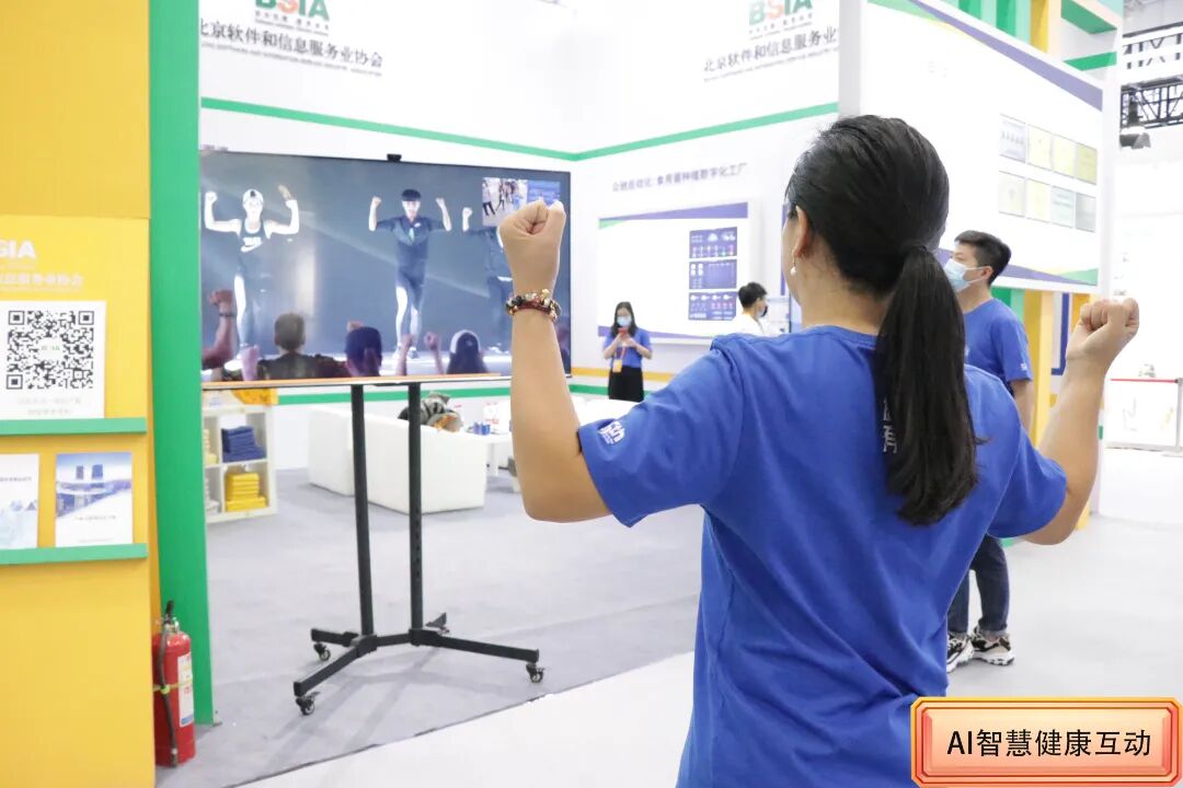 在协会展台,还有一个亮点就是观众可以沉浸体验AI智慧健康创新场景。该场景北京健康有益科技有限公司提供。