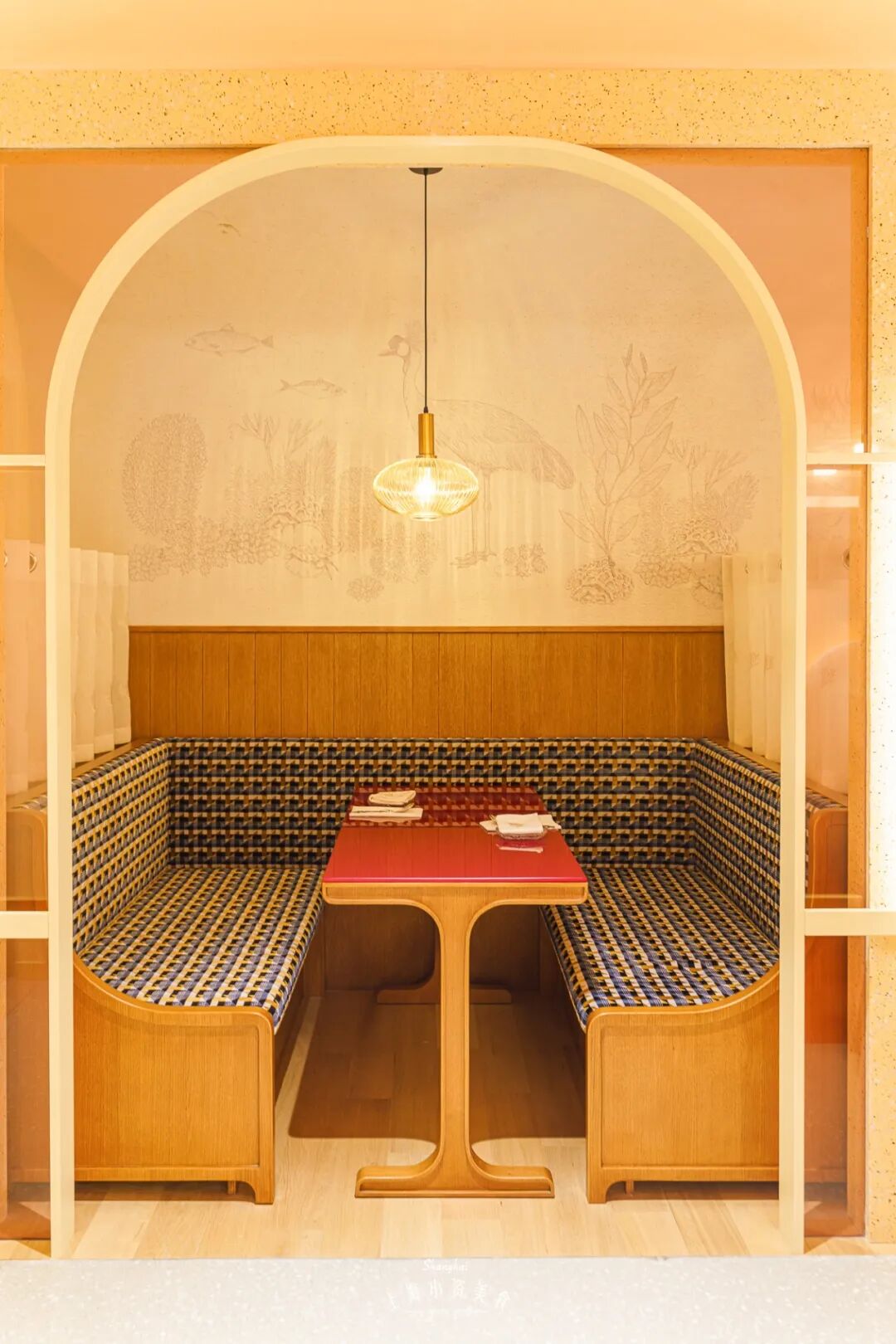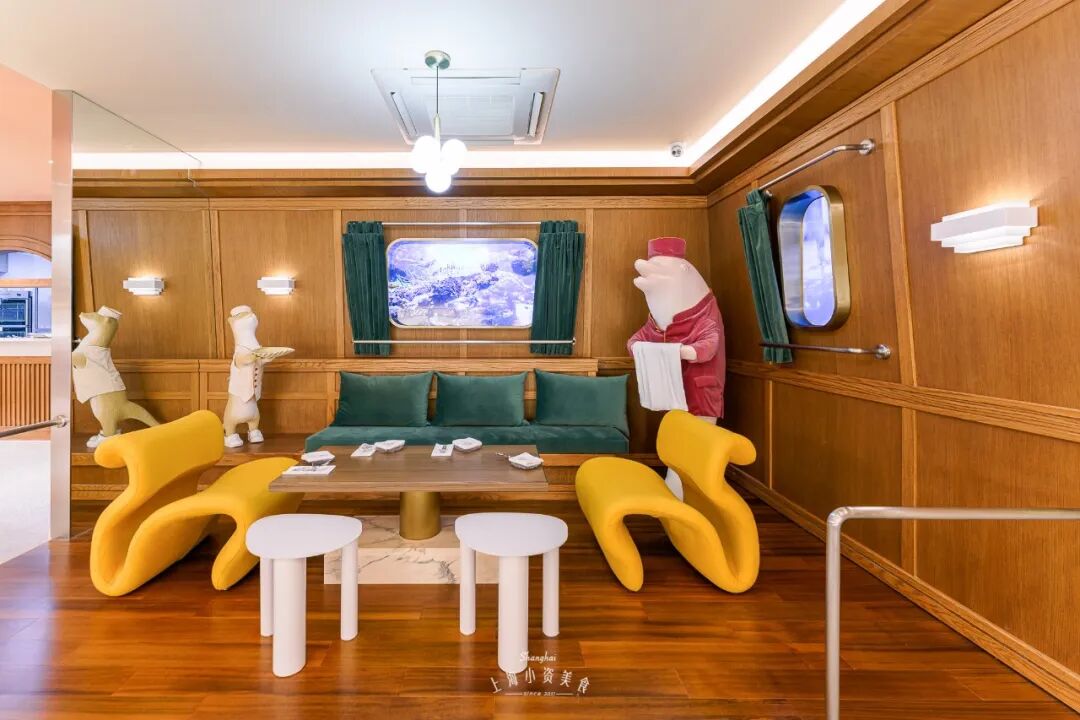 从帝都到魔都,NUDAKE这次“变”了!他们耗时大半年,完全颠覆首店的火星科幻感,在沪上打造一片神秘的海洋世界Oyster Bar,唯美梦幻,每个角落都是网红出片地。极具戏剧感的空间入口,就值得你按下800次快门。动物画报、火烈鸟装置fancy感十足,光怪陆离的TICKET柜台,甚至带着一丝诡魅。一切都不禁让人联想,海底宴会究竟藏着怎样的惊喜?探索之前,先在售票处前留下一张动物面具打卡照,伪装好自己,进入这场神秘宴会吧~步入餐厅,画风瞬间转换,内部以珊瑚粉为主色调,搭配斑斓的海底生物元素,带你潜入一片梦幻深海。“船舱”中的VIP区域,除了能够坐看深海鱼群缓缓游过,还享有专属“海豚服务生”,实在有趣!整个空间的右侧,NUDAKE还设计了一辆海底列车,用海洋壁纸、黄铜灯具等温柔元素营造出法式复古美感;一旁的双人位区域,满眼尽是淡雅的粉色,一秒点燃少女心。藏于深处的私人客厅,如同珊瑚礁内无人窥及的宝藏,水母灯若隐若现,氛围静谧,饶有格调。NUDAKE这座幻想剧场,完全能用一步一景来形容。定制版海洋桌面、小珊瑚窗帘、海浪餐具......细节上也丝毫不马虎。对了,设计师还贴心地为女孩子们准备了化妆间,镜面可随意调节冷暖色调,本身就是一个好拍圣地。