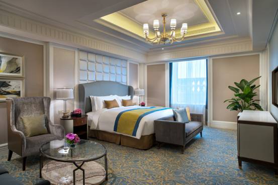 皮革桌面书台、自由调节的行政座椅,客房设计大方亮丽,处处流露出法式优雅品味。