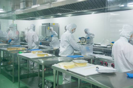 工厂内部分为不同的车间和部分,从配料到出货,相互协调搭配,共同完成千层蛋糕的制作,如果不是亲眼看到,真的不敢相信制作一个千层蛋糕这么复杂。而且有些直接接触到蛋糕的车间甚至还需要二次更衣。