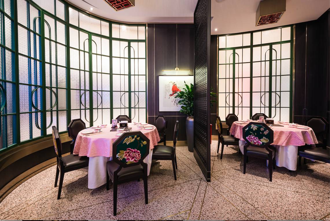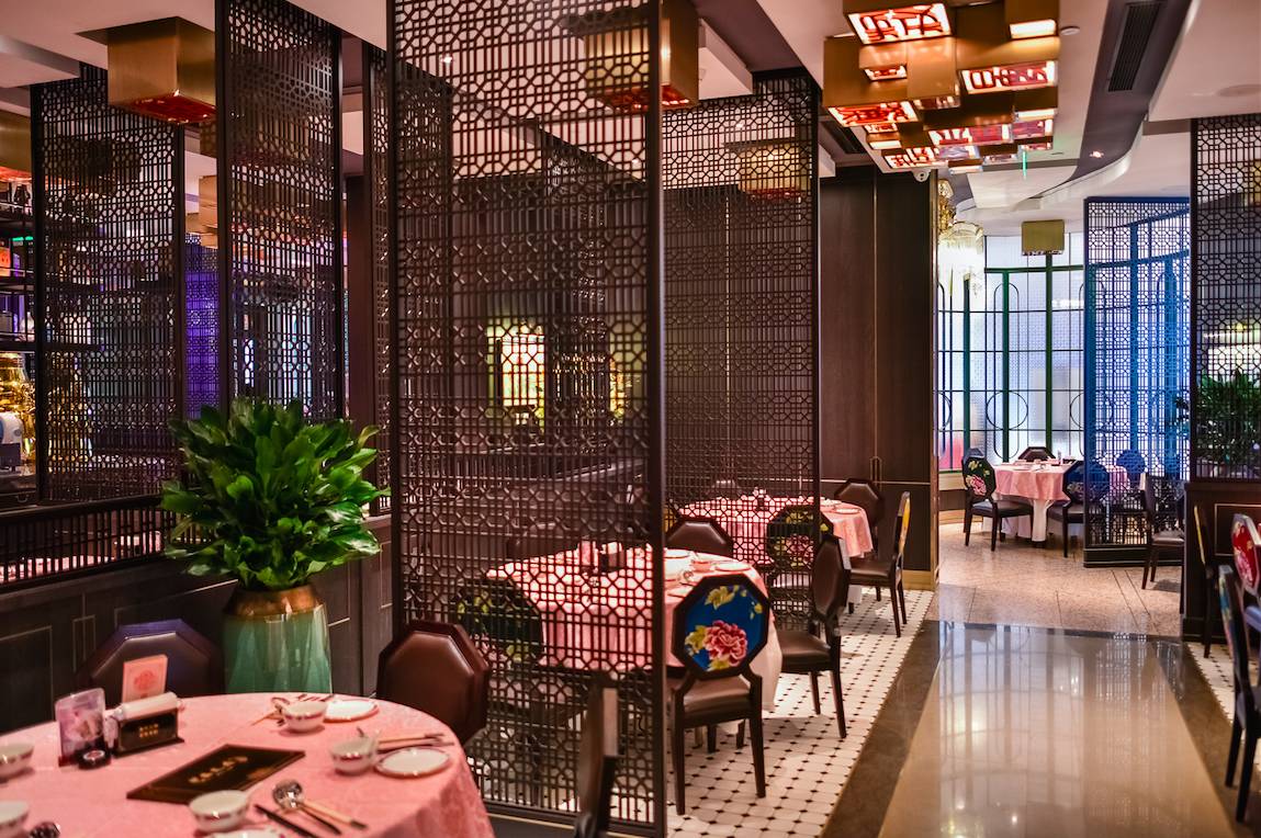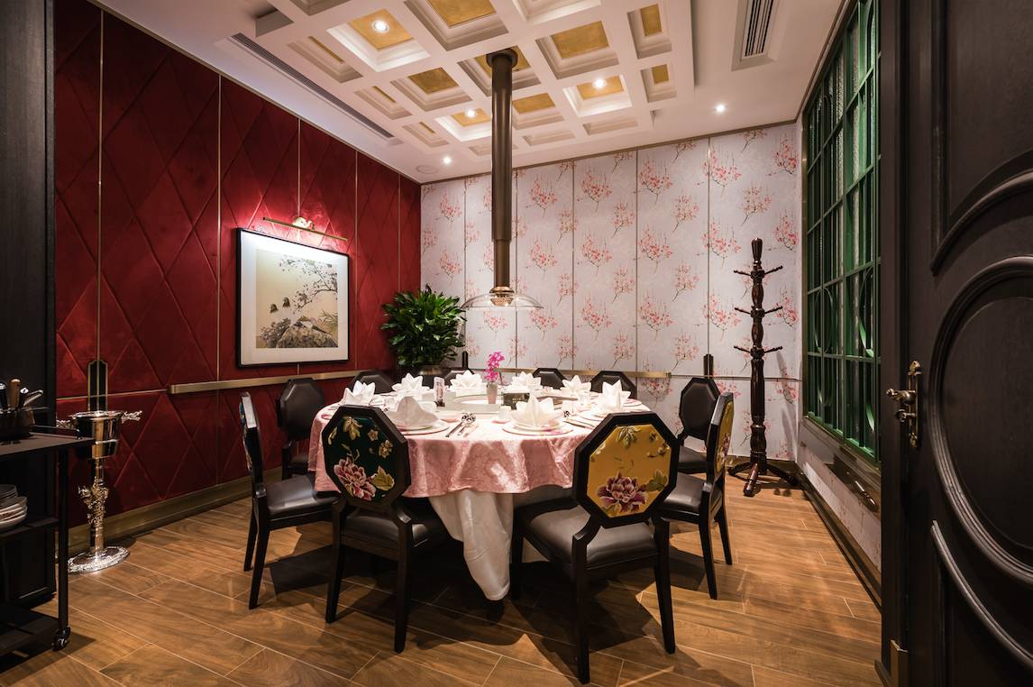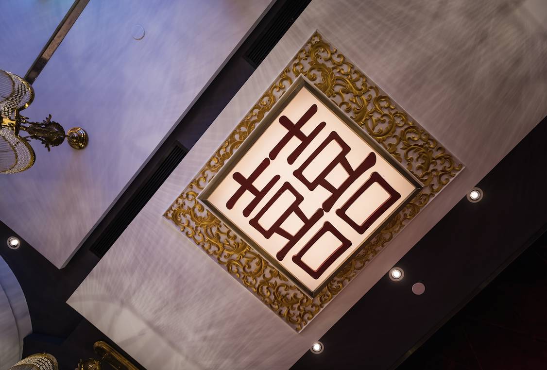 步入餐厅,仿佛是穿越去了60年代的香港名门家族,挑高的水晶灯设、天花板上的“囍”字招牌、复古年代的竹制屏风、古典名人字画,入眼的每一帧都是完美画卷。