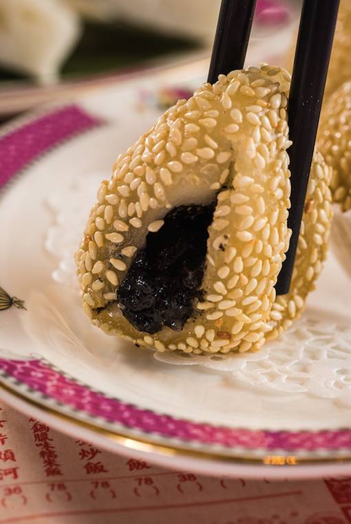 拳头大小般的油炸糯粉团,表面裹满白芝麻,里面是经慢火20-30分钟炒香的黑芝麻。师傅说,这小小芝麻团的成败,就在于里面的黑芝麻,能戳碎才算过关,金黄酥脆的表皮,内馅软糯香甜,都是慢工出细活的技艺之道。