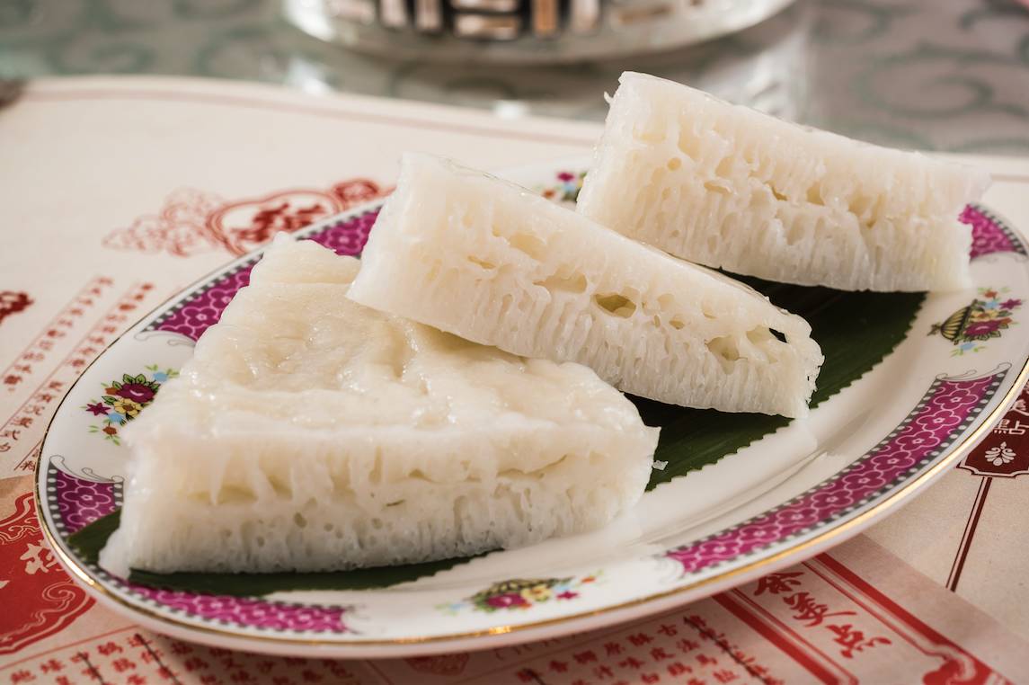 洁白无瑕的白糖糕,最早始创于明朝广东顺德伦教,也叫伦教糕。看似平淡无奇的白糖糕,其实制作工序繁琐至极,现在的香港街头越来越难看到它的踪影。
