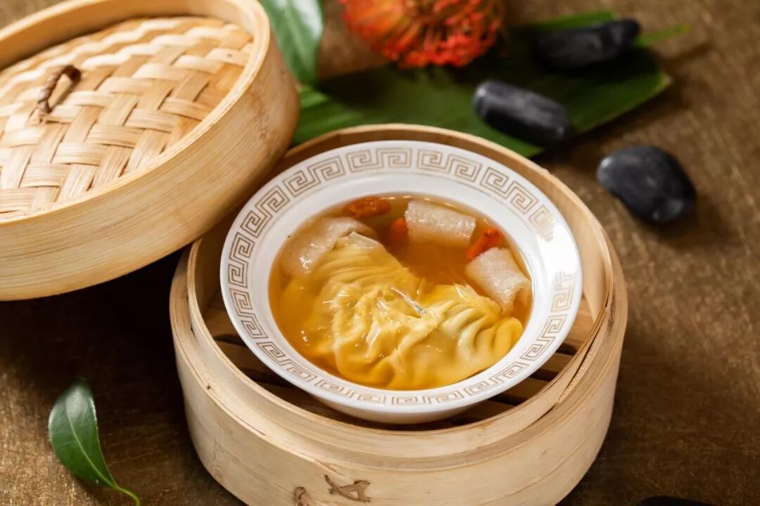灌汤饺吹弹可破,露出饱满丰富的馅料,有鲜虾、猪肉等等,整一个吸满汤汁,鲜美无比。吃完饺子,别忘了将高汤喝尽,每一口都浓缩了食材的精华。