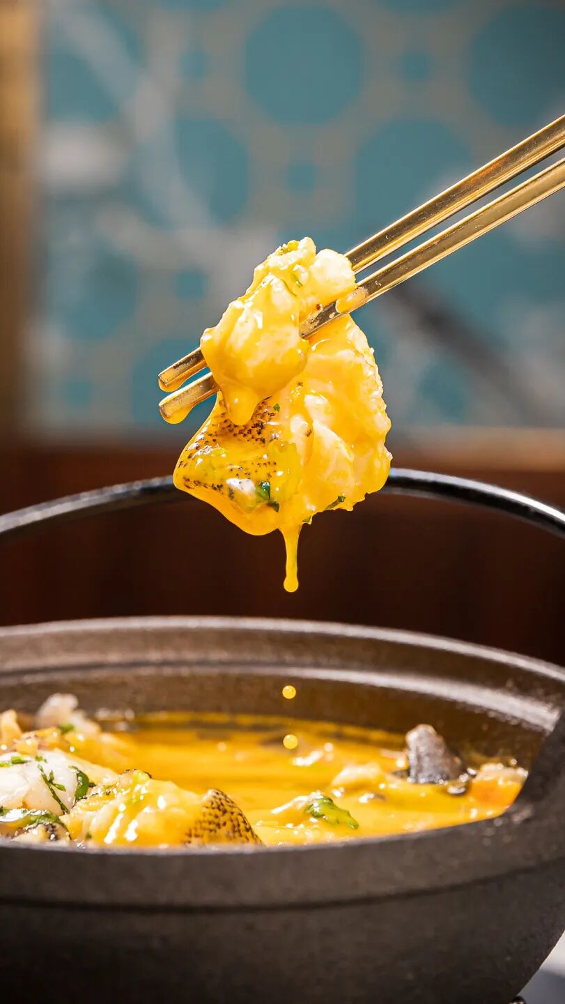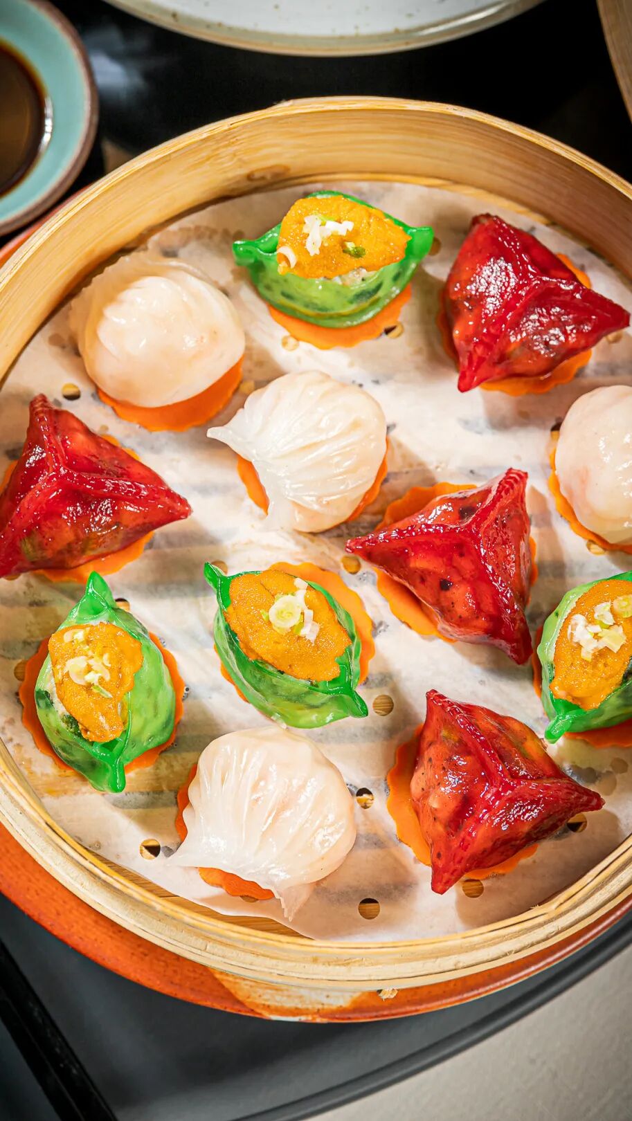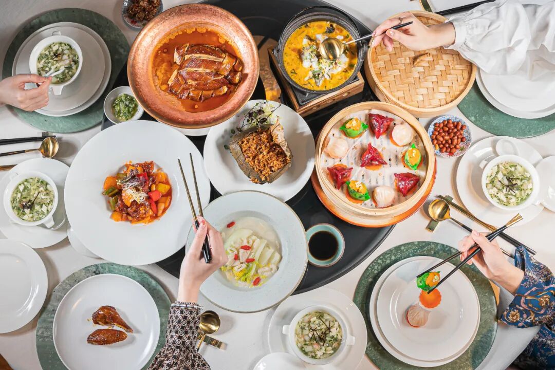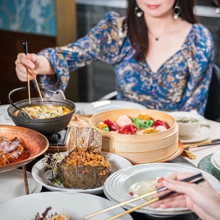 色彩斑斓的缤纷点心拼盘、春意盎然海鲜羹、仪式感十足的招牌铜盘香草火焰鸡、酸甜凤梨咕噜肉、招牌必点的杨枝甘露......结合了经典菜色与时令美味。